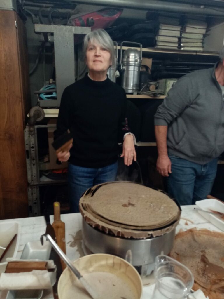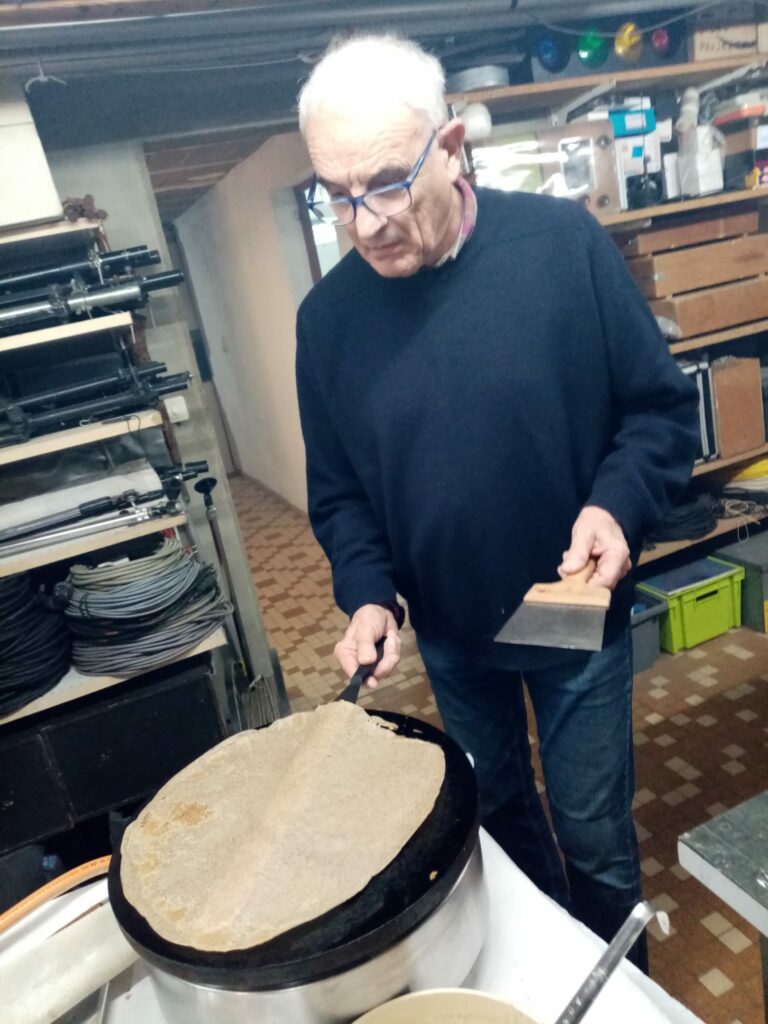 C’est dans une ambiance conviviale que 10 stagiaires sont venus découvrir l’art de fabriquer des crêpes et des galettes. Le but de cette journée était d’apprendre à tourner les galettes et les crêpes sur une billig. Ce moment d’apprentissage était dirigé par Christian Jacob.